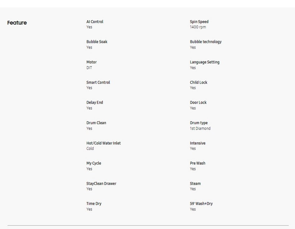 ● Intelligent Wash - Wash easily and effectively with powerful AI Control. It personalizes washing by remembering your habits, suggesting cycles and displaying timely information