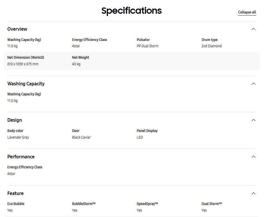 Samsung 11KG Top Load Washer with Ecobubble WA11CG5745BYFQ Washing Machine (Light Gray)