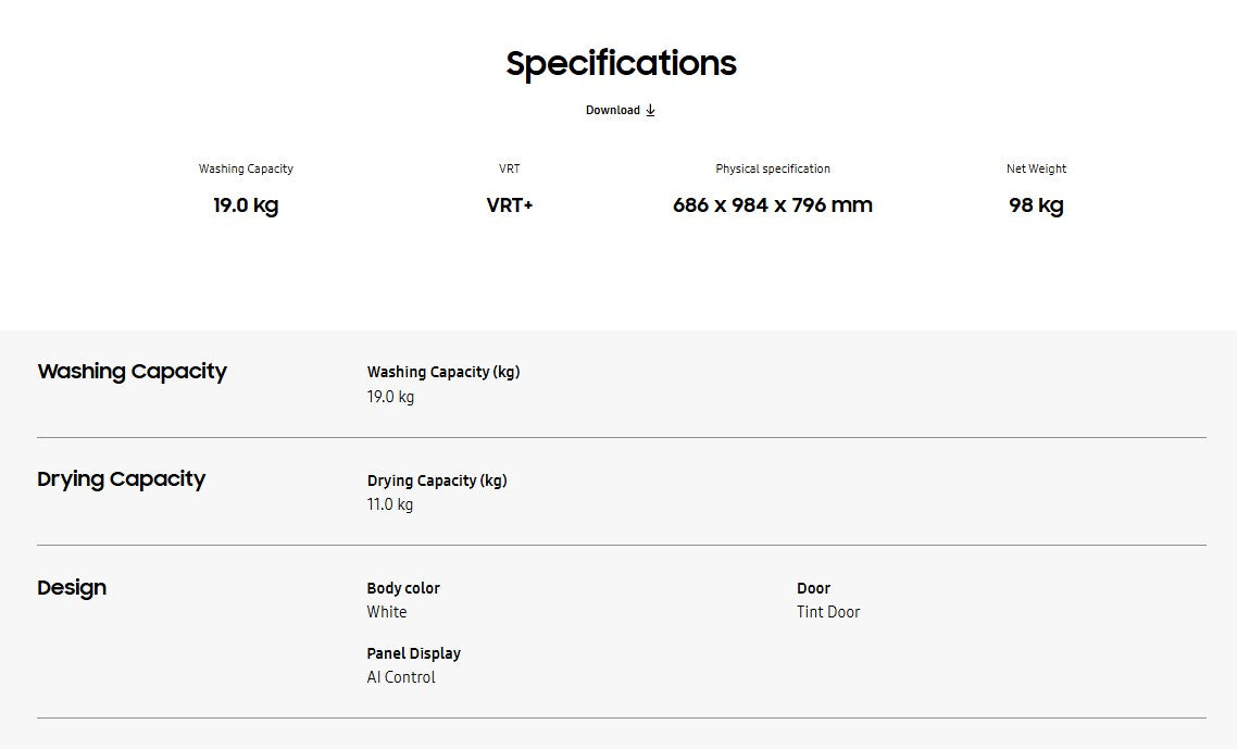Samsung 19kg/11kg WF6000R Inverter Washer Dryer with Ecobubble WD19T6500GW/FQ / WD19T6500GW Washing Machine