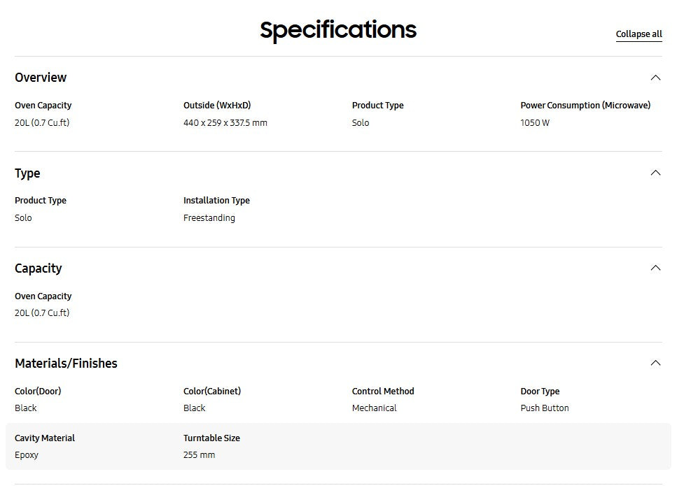 ● Oven Capacity 20L (0.7 Cu.ft)