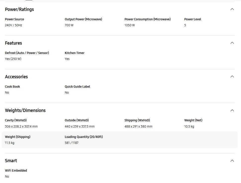 ● Power Consumption (Microwave) 1050 W