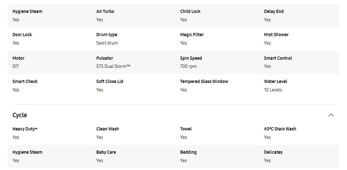 ● Hygiene Steam - Give laundry an intensive and hygienic clean with hot water and steam