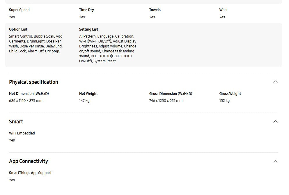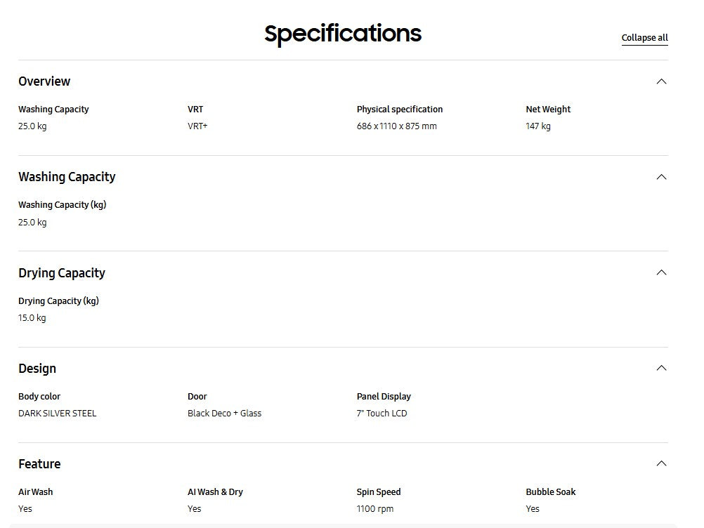 Samsung 25/15 kg Washer Dryer Heat Pump WD25DB8995BZFQ