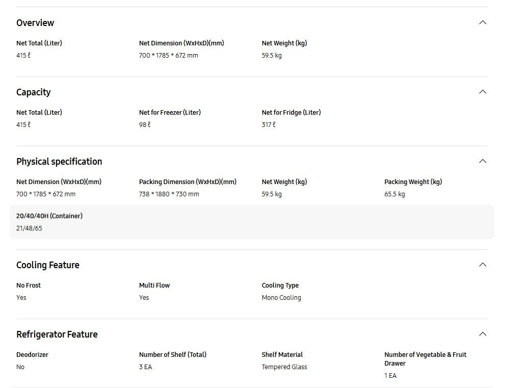 Samsung 427L Fridge Top Mount Freezer with Optimal Fresh RT42CG6444B1ME Inverter Refrigerator