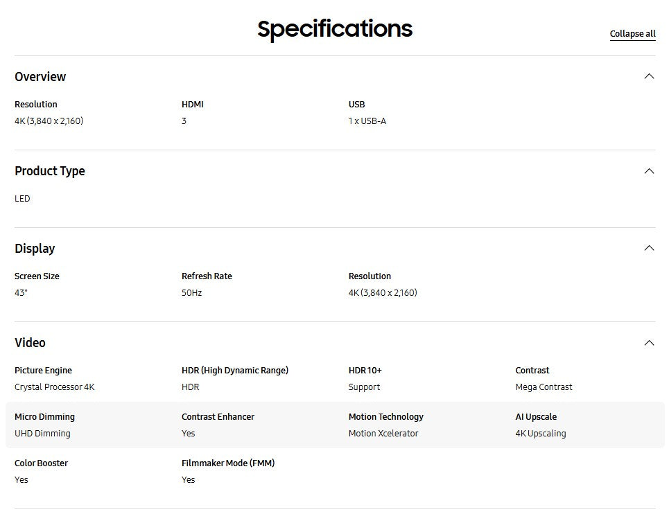 SAMSUNG 43" UA43U8000FKXXM UHD U8000F 4K Smart TV (2025) Television