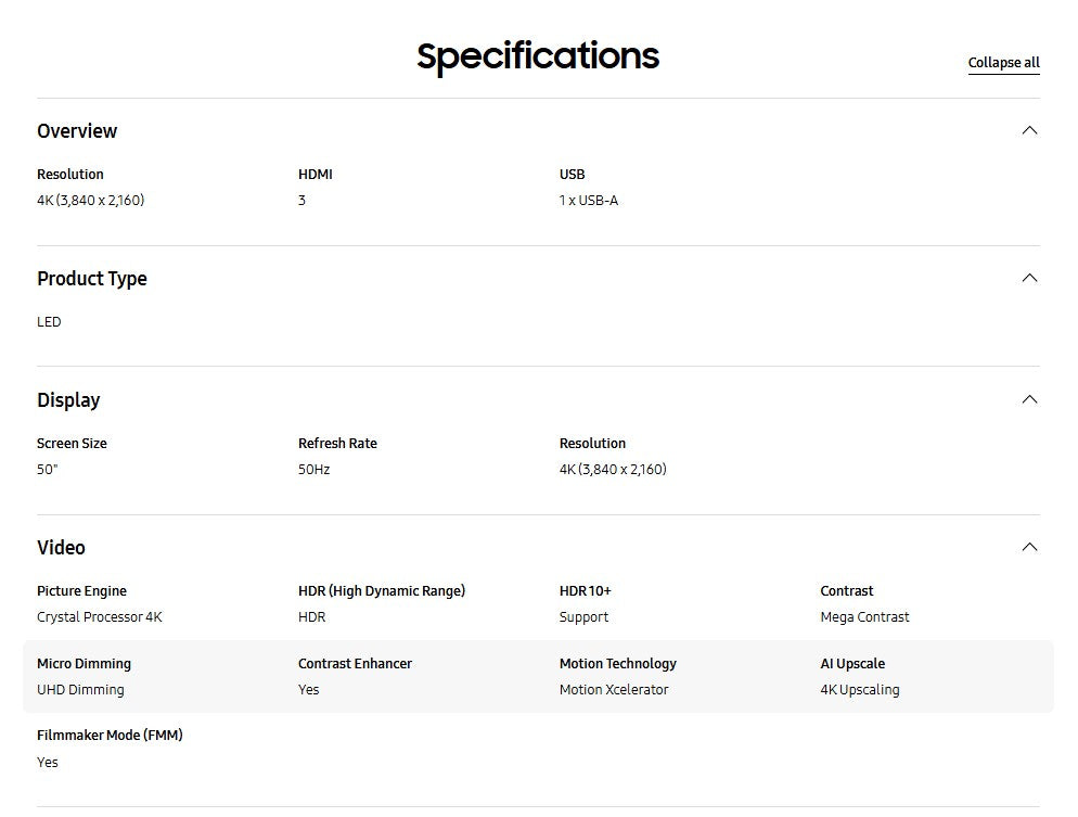 Samsung 50" Crystal UHD DU7000 UA50DU7000KXXM 4K Smart TV Television