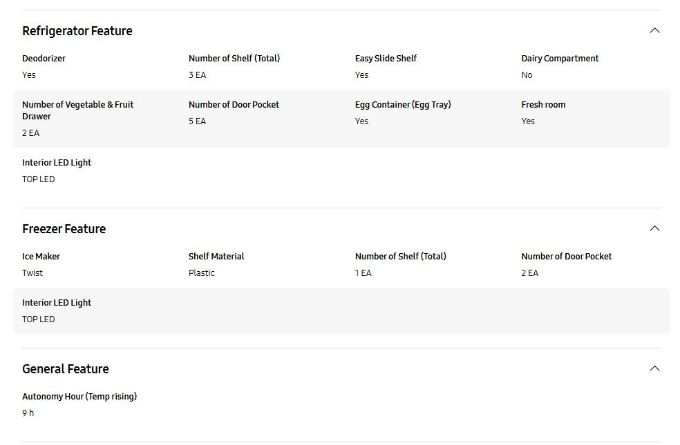 ● Net for Refrigerator(Liter) 404 ℓ