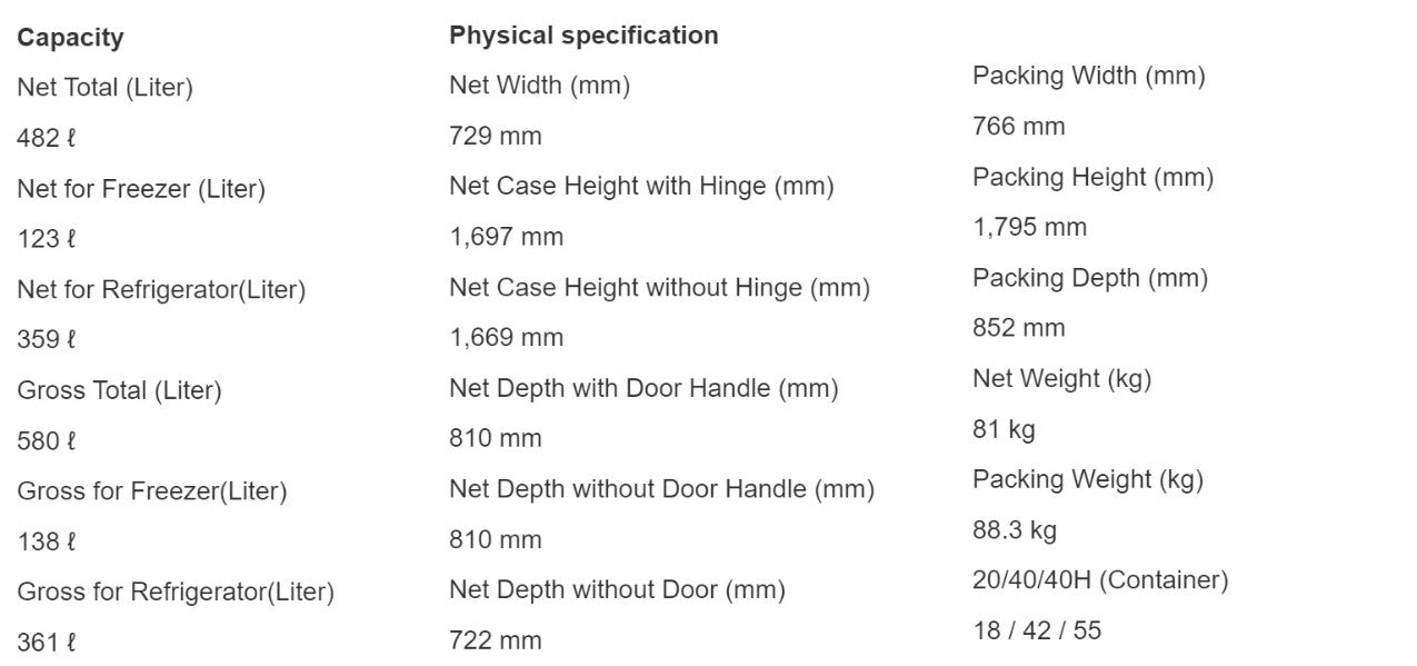 ● Nett Capacity: 482L