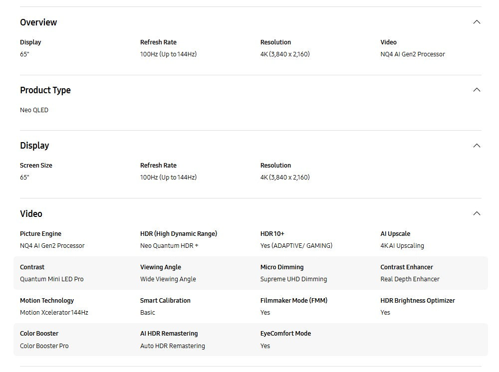 Samsung 65" QA65QN85FAKXXM Neo QLED 4K QN85F Vision AI Smart TV (2025) Television
