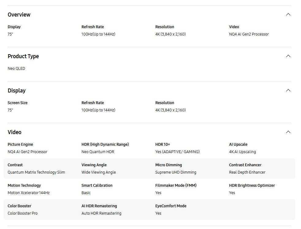 Samsung 75" Neo QLED QN70F 4K QA75QN70FAKXXM Vision AI Smart TV (2025) Television
