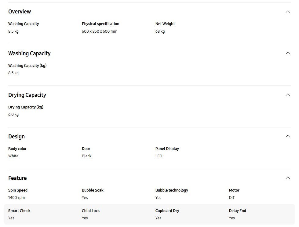 Samsung 8.5KG Wash & 6KG Dry WD85T4046CE/FQ Inverter Front Load Washer Dryer with Hygiene Steam WD85T4046CE Washing Machine