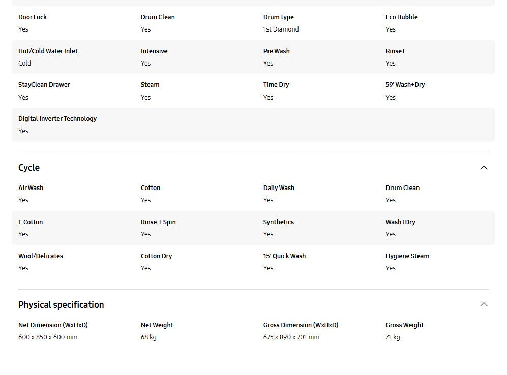 ● Eco Bubble™ - Enjoy efficient cleaning, even at low temperatures with Eco Bubble™ technology
