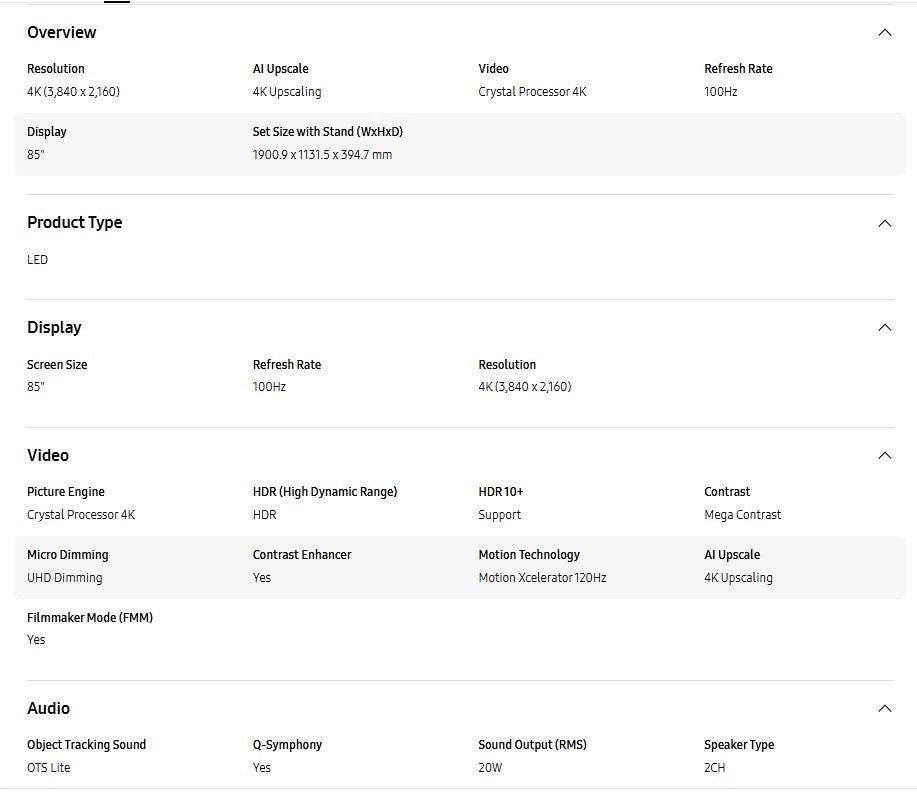 Samsung 85" Crystal UHD 4K DU8000 UA85DU8000KXXM Smart Tv Television