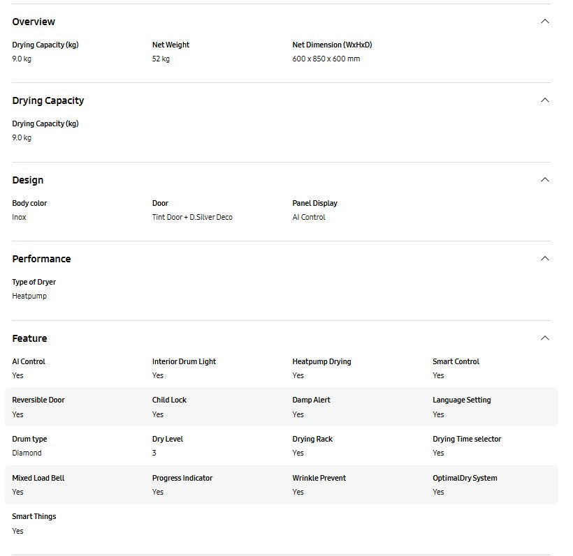 Samsung 9KG Heat Pump Dryer DV90T8240SX/FQ AI Control DV90T8240SX