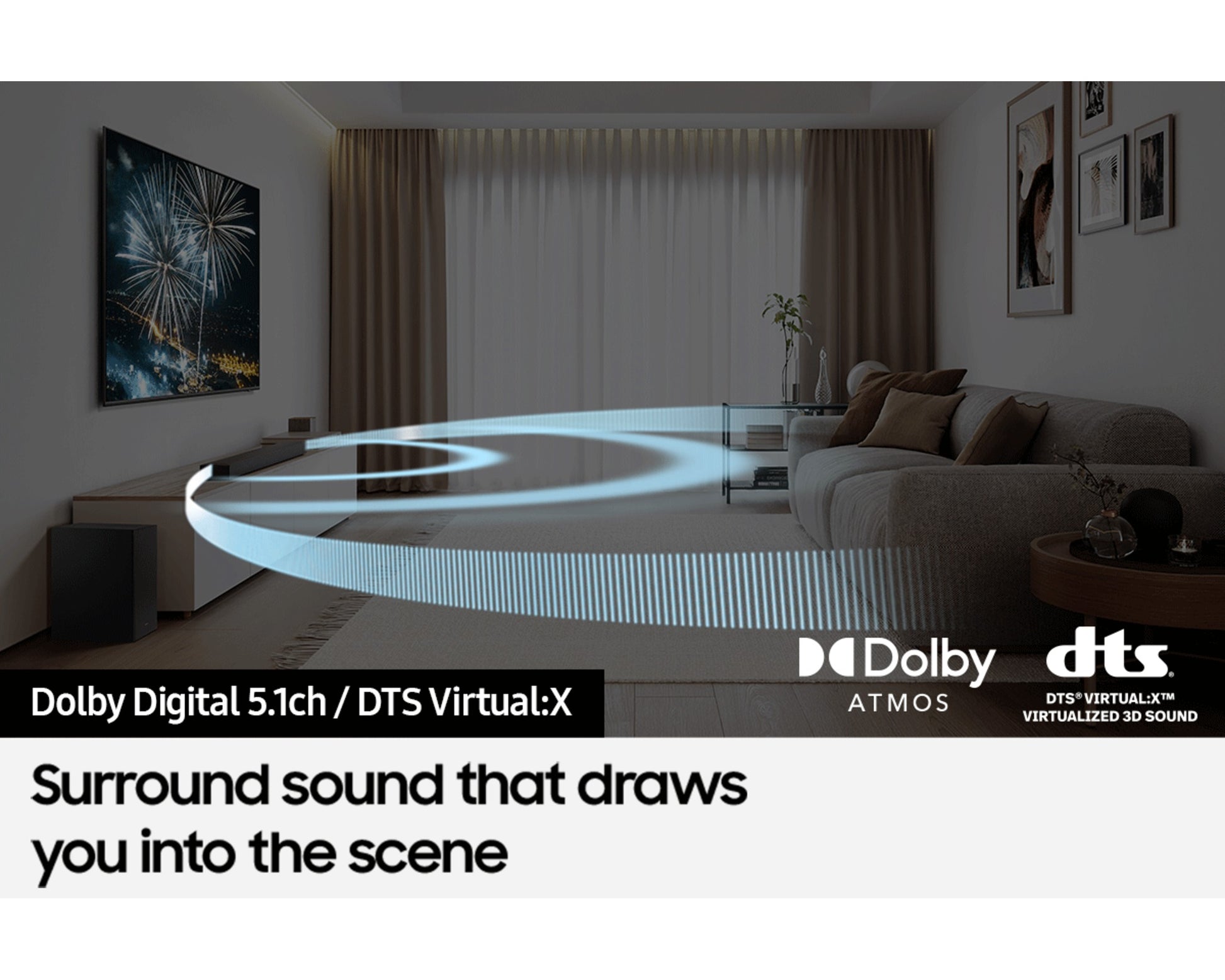 ● Sound Modes Bass Boost, Surround Sound Expansion, Game, Adaptive Sound, DTS Virtual:X, Standard