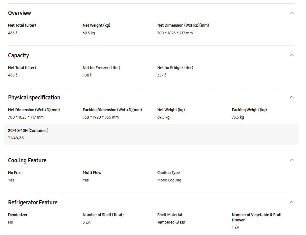 ● Net Total (Liter)-465L