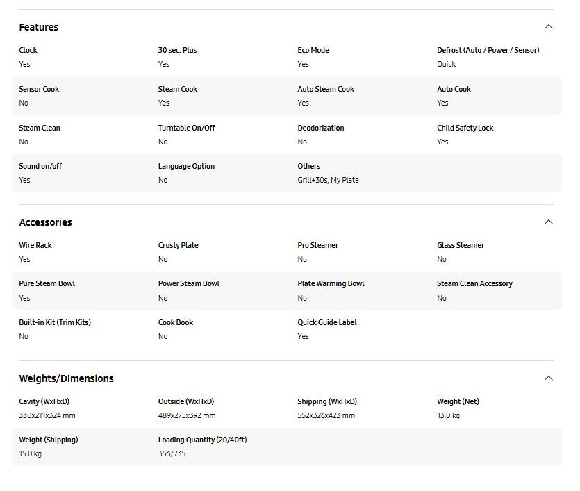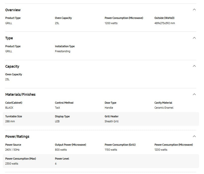 Samsung Microwave MG23K3513GK Grill Microwave Oven with Healthy Steam 23L