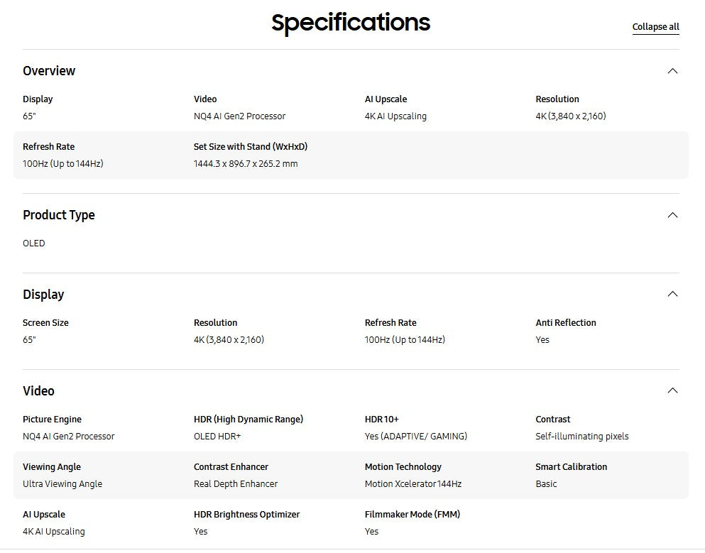 Samsung TV 65" OLED 4K S90D QA65S90DAKXXM Dolby Atmos Television