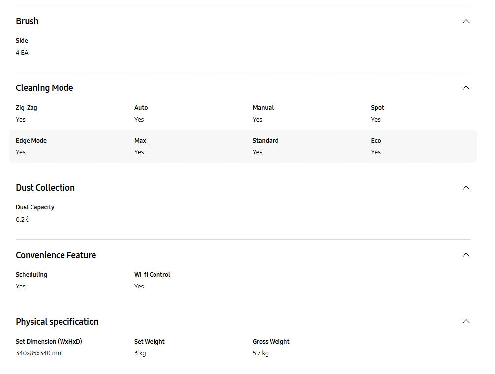 Samsung Vacuum Cleaner Powerbot VR05R5050WK Essential 2 in 1 Vacuum Cleaning & Mopping VR05R5050WK/ME