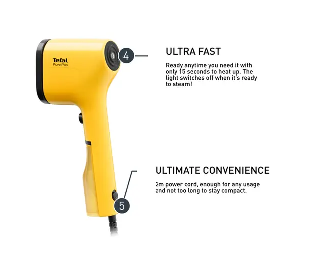 - Efficient Steaming: Up to 20 g/min steam output for quick de-wrinkling and sanitizing.