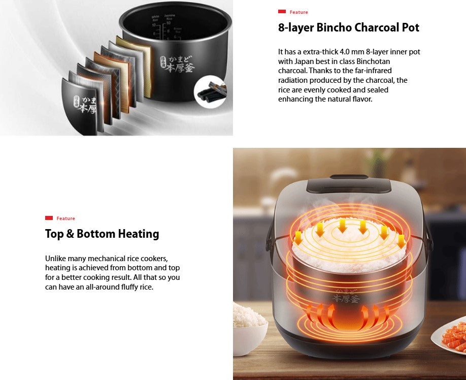 Toshiba 1.8L RC-18DR1TMY(S) Silver Bincho Charcoal Series Rice Cooker RC18DR1TMYS