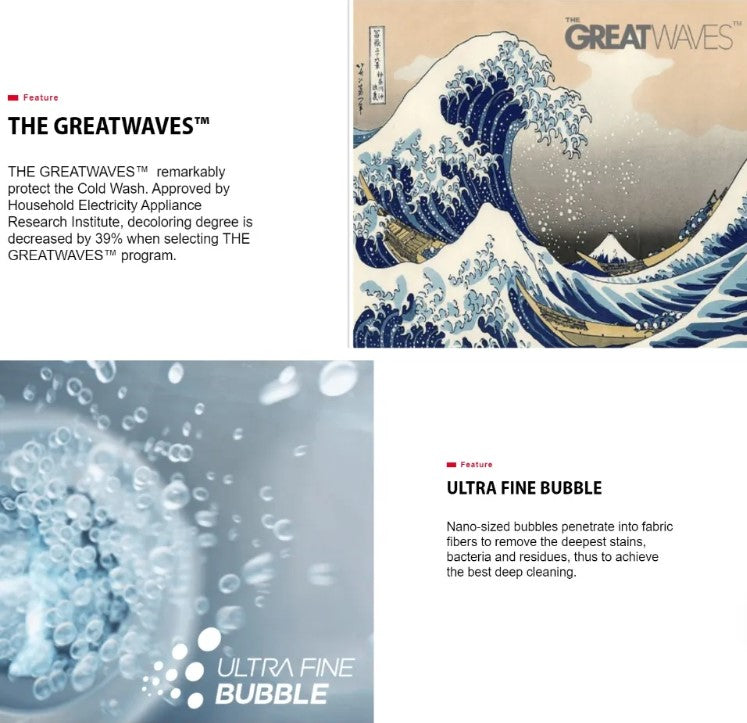 ● Programs 12 (Cotton, Memory, Mix, Wool, Quick 12′, Wash 45′, Eco Wash, Bedlinen, Spin Only, Drum Clean, Anti-allergy, The Greatwaves)