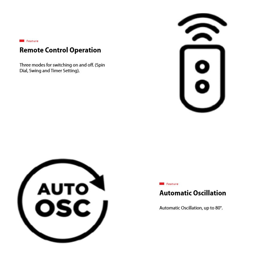 ● Remote Control Operation: Three modes for switching on and off. (Spin Dial, Swing and Timer Setting).