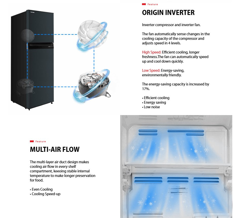 Toshiba 310L GR-RT320WE-PMY(UK) Refrigerator Inverter Fridge Black GRRT320WEPMYUK