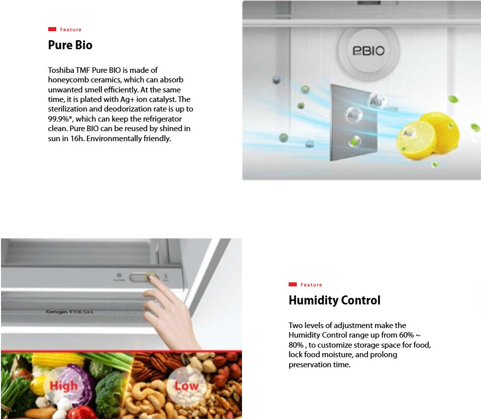 TOSHIBA 530L Inverter 2 Door Fridge Refrigerator GR-RT624WE-PMY(06) Morandi Gray / GRRT624WEPMY06