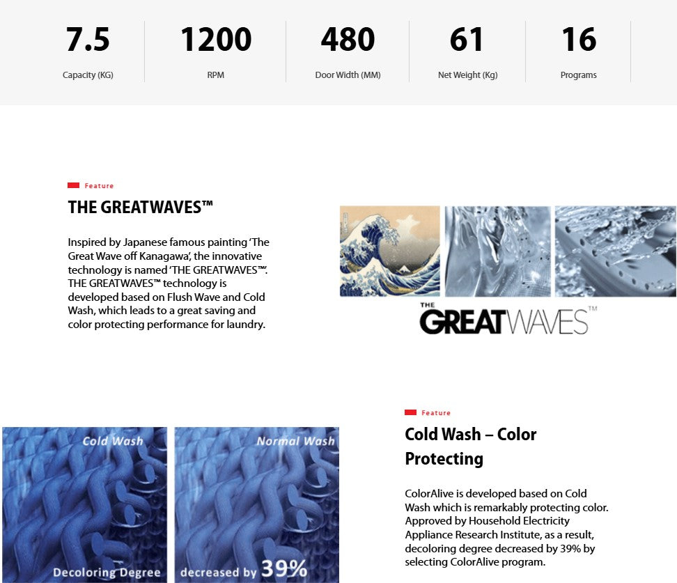 ● 8.5KG Net wash capacity