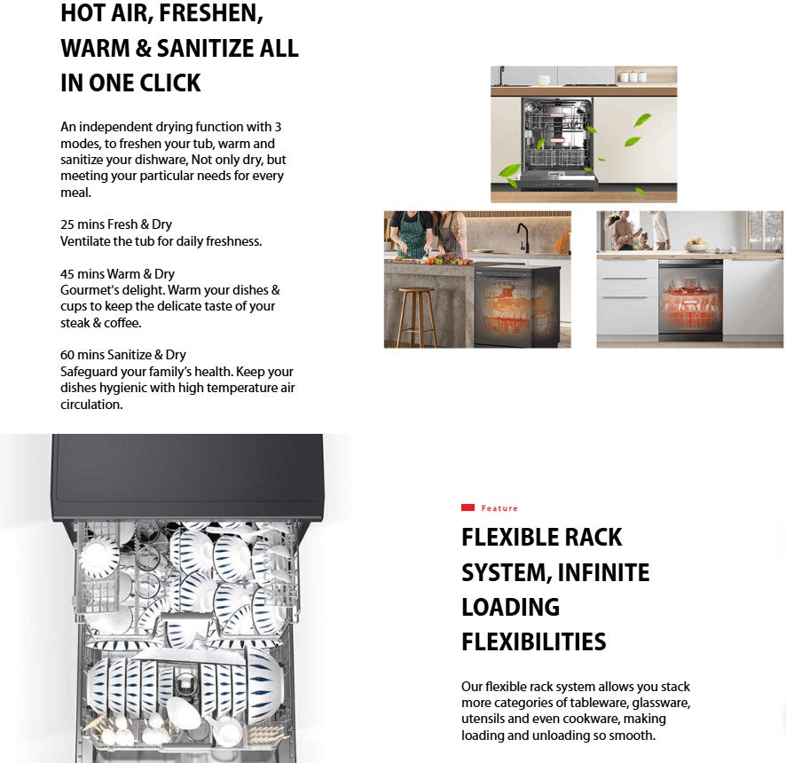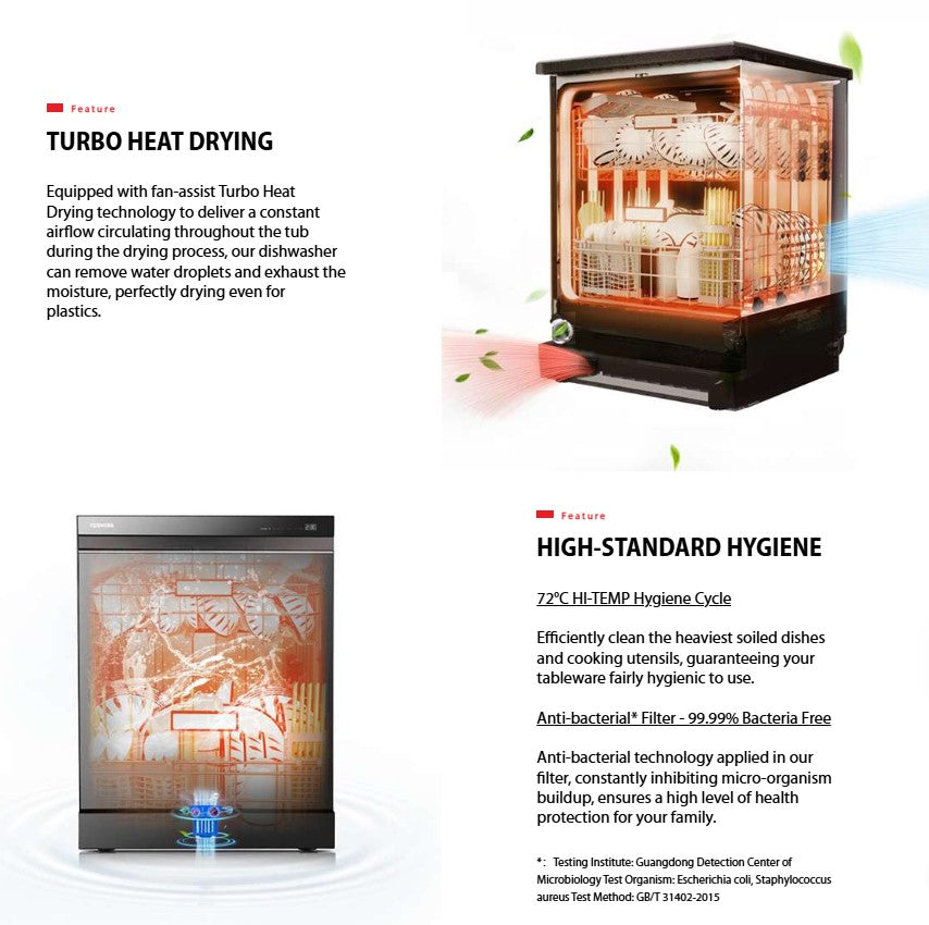 Toshiba Free Standing 15 Places Settings Dishwasher DW-15F6G / DW15F6GMY