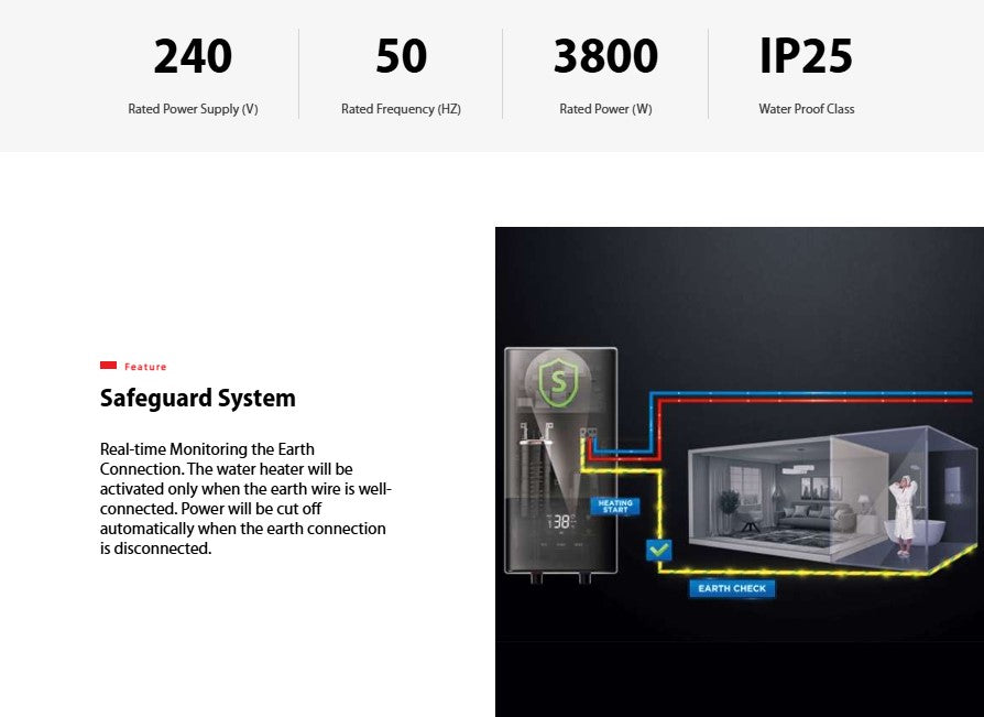 Toshiba Instant Water Heater TWH-38EXPMY(G) With Pump and Rainshower / TWH38EXPMYG 3800W (Gold)