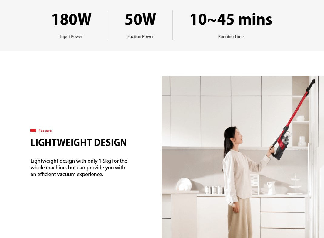 Toshiba Lightweight Cordless Vacuum Cleaner VC-CLX50BF(R) / VCCLX50BFR 180W (Red)
