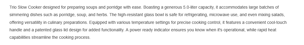 Trio 5L Slow Cooker for Soup and Porridge TSC-500/TSC500